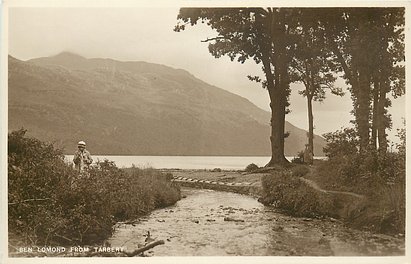 sepia, PRINTED IN ENGLAND, sold in packet of TWELVE SEPIA MATT VIEWS, J. STEWART, CONFECTIONER, ARDEN BY LOCH LOMOND.