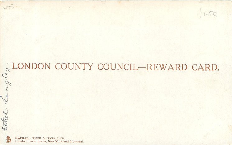 back Tuck logo at base with RAPHAEL TUCK & SONS, LTD. ART PUBLISHERS TO THEIR MAJESTIES THE KING & QUEEN