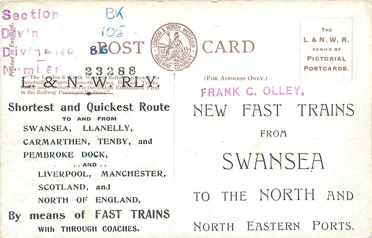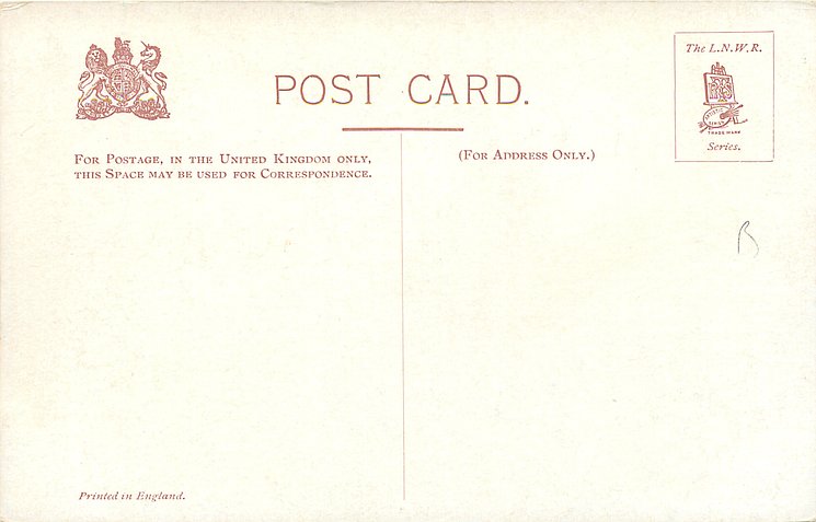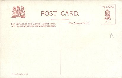 coloured THE L.N.W.R. SERIES (in stamp box), PRINTED IN ENGLAND or not for more information & allocation to sets see The Official Railway Postcard Book by John Alsop