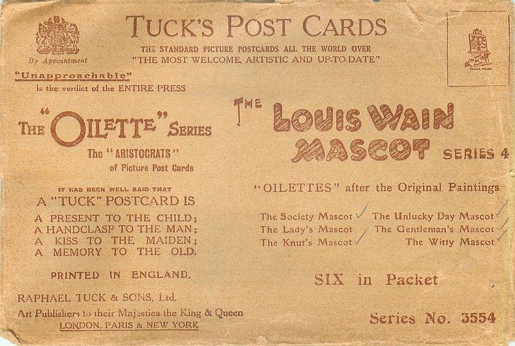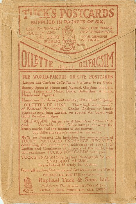 OILETTE, COPYRIGHT LONDON, PRINTED IN ENGLAND, listed in 1930 POSTCARD catalogue, see Booth and Lund