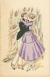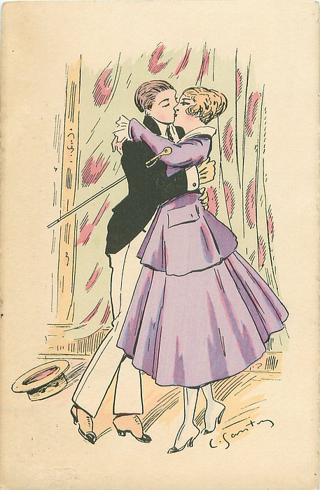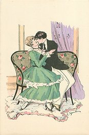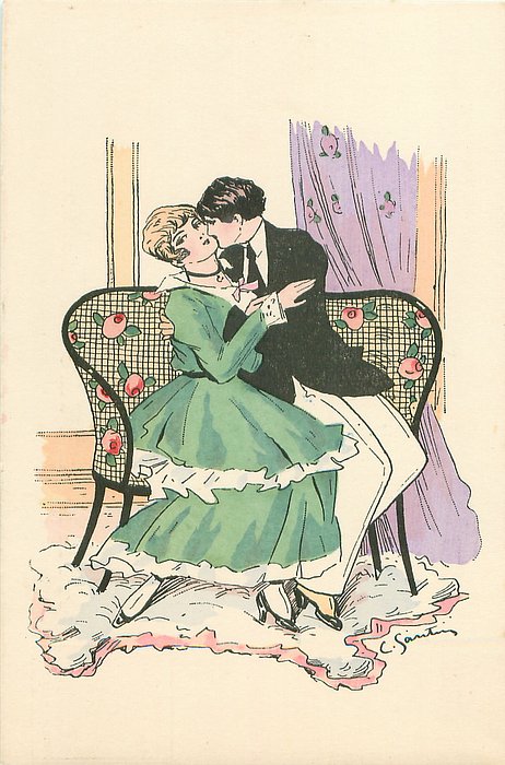 shades of grey/black, u/b, CONNOISSEUR (misspelt as 'CONNVISSEUR'), ENGRAVED IN AUSTRIA come hand-coloured, listed in 1904 POSTCARD Catalogue, same images in 282-french set la romance du coeur