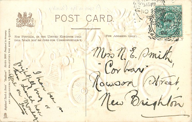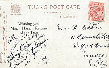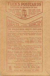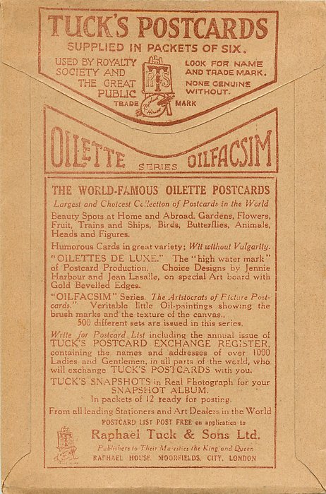 comes TUCK'S ART PRODUCTIONS ad on back, BRITISH INDUSTRIES FAIR WHITE CITY, 1921, STAND NO. G.93.