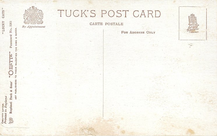 OILETTE, COPYRIGHT LONDON, PRINTED IN ENGLAND or PRINTED IN THE UNITED KINGDOM, come with brown filigree covering English wording at top of card-for sale in France