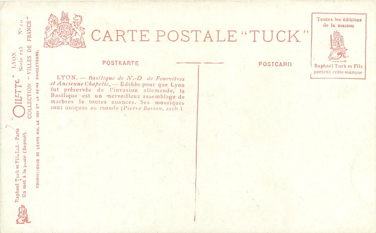 OILETTE, PRINTED IN ENGLAND, listed in 1908/1909 & 1911/1912 Postcard Catalogue