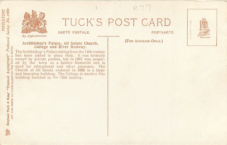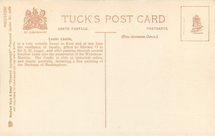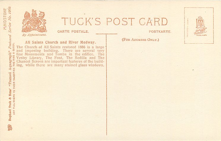 FRAMED AQUAGRAPH, PROCESSED IN SAXONY (in stamp box), listed in 1930 POSTCARD Catalogue