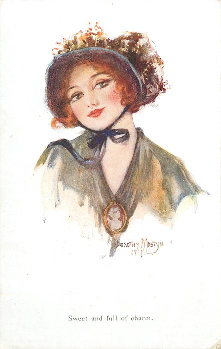 OILETTE CONNOISSEUR, COPYRIGHT LONDON, PRINTED IN ENGLAND, same images with mascot 2992, AFTER THE ORIGINAL DRAWING BY DOROTHY MOSTYN.