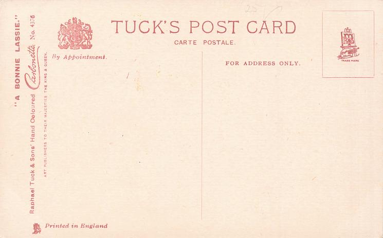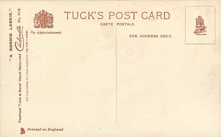 HAND COLOURED CARBONETTE, PRINTED IN ENGLAND for same images not HAND COLOURED see 4634. 4376 come marked on back HAND COLOURED CARBONETTE but are not coloured.
