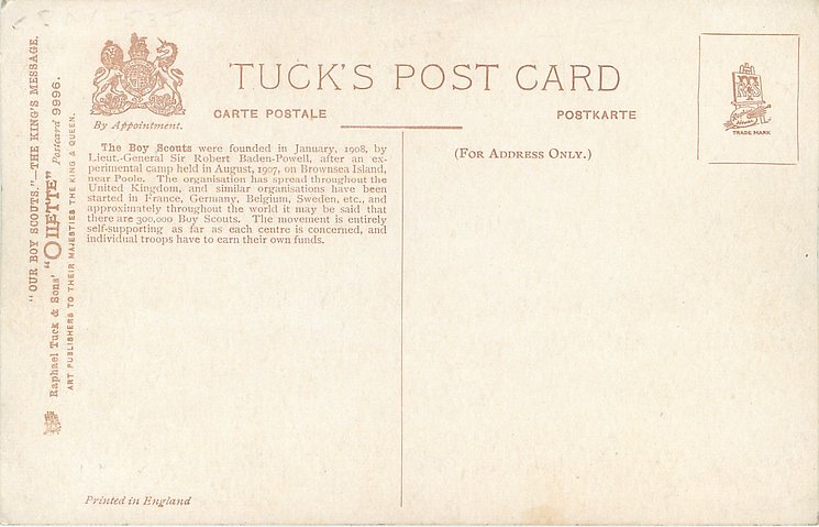 OILETTE, PRINTED IN ENGLAND with or w/o COPYRIGHT LONDON, listed in 1908/1909 &1911/1912 & 1912/1913 &1913/1914 POSTCARD Catalogues