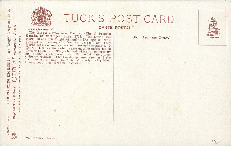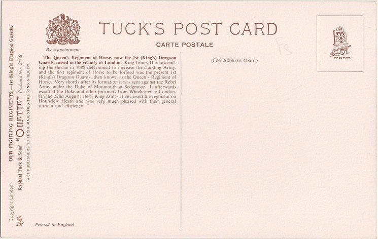 note: later "muddy" printing on whiter paper, sold in set of 6 with 3105, 3163 and 3 other cards of 3165, packet scanned here