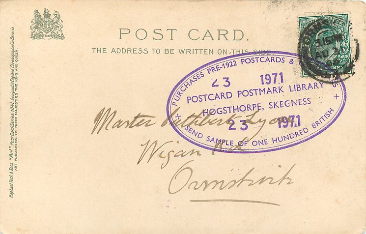 ART, u/b DESIGNED IN ENGLAND, CHROMOGRAPHED IN BAVARIA, listed in 1904 POSTCARD Catalogue