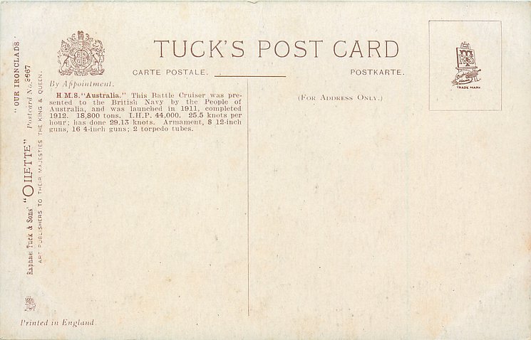 OILETTE PRINTED IN ENGLAND, same images & card titles OUR NAVY SERIES VII 8644, same ships PHOTOGRAPHIC GLOSSO 2582