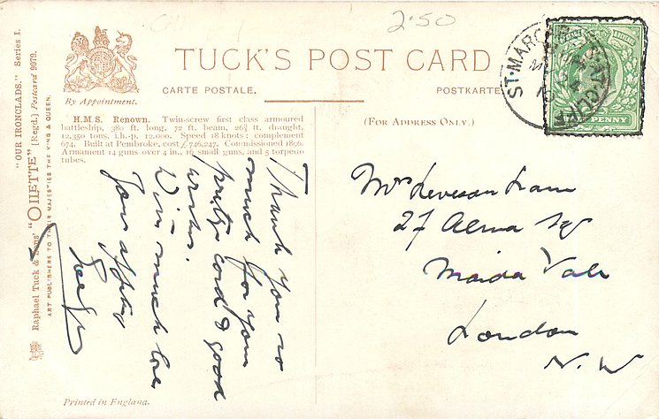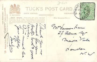 comes with an overprint and an extra message on the reverse IN GLORIOUS MEMORY NORTH SEA-OFF JUTLAND. MAY 31st, 1916
