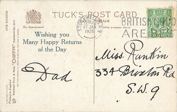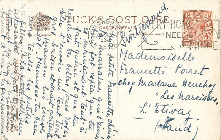 OILETTE, PRINTED IN ENGLAND or PRINTED IN THE UNITED KINGDOM, COPYRIGHT LONDON or not, listed in 1930 POSTCARD Catalogue