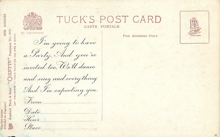 OILETTE, PRINTED IN ENGLAND, COPYRIGHT LONDON, come w/o series number