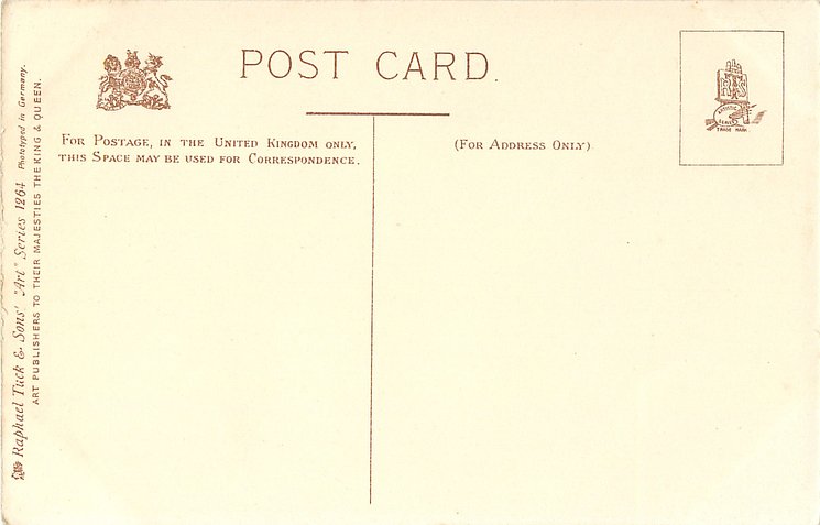 grey, ART, PHOTOTYPED IN GERMANY, monochrome, listed in 1904 POSTCARD Catalogue