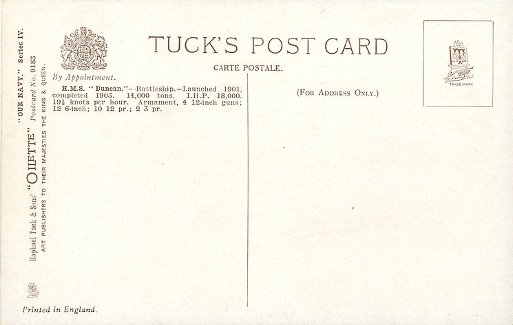 OILETTE, PRINTED IN ENGLAND, same images & card titles OUR IRONCLADS 8643