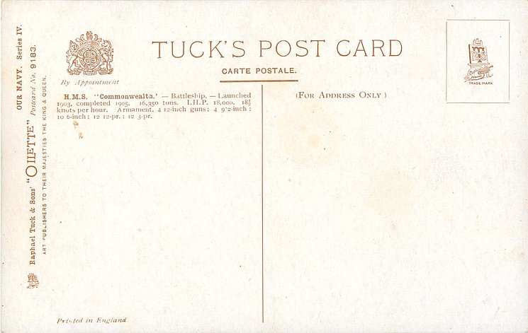 OILETTE, PRINTED IN ENGLAND, same images & card titles OUR IRONCLADS 8642