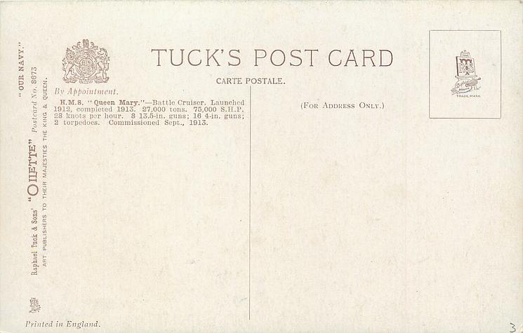 comes with an overprint and an extra message on the reverse IN GLORIOUS MEMORY NORTH SEA-OFF JUTLAND. MAY 31st, 1916