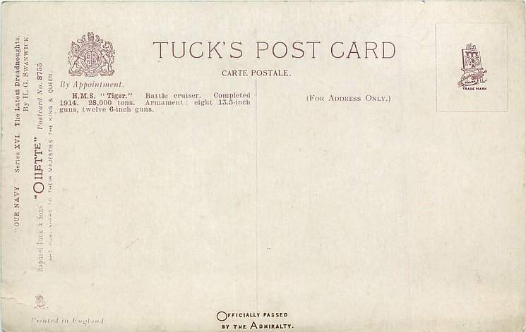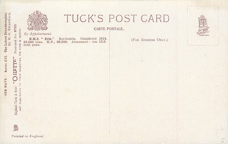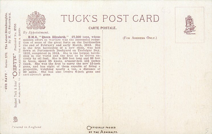 OILETTE, PRINTED IN ENGLAND, come OFFICIALLY PASSED BY THE ADMIRALTY on back