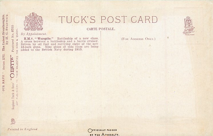 PHOTOGRAVURE, may come CARBONETTE, come inscribed OFFICIALLY PASSED BY THE ADMIRALTY, PRINTED IN ENGLAND