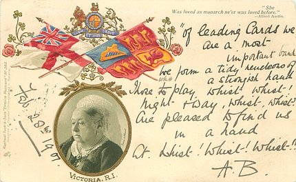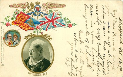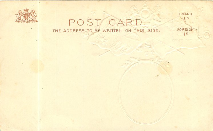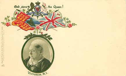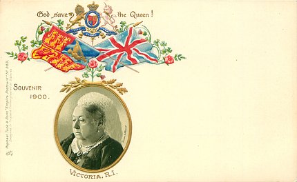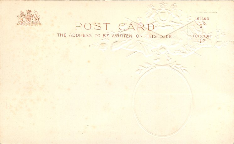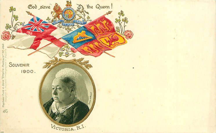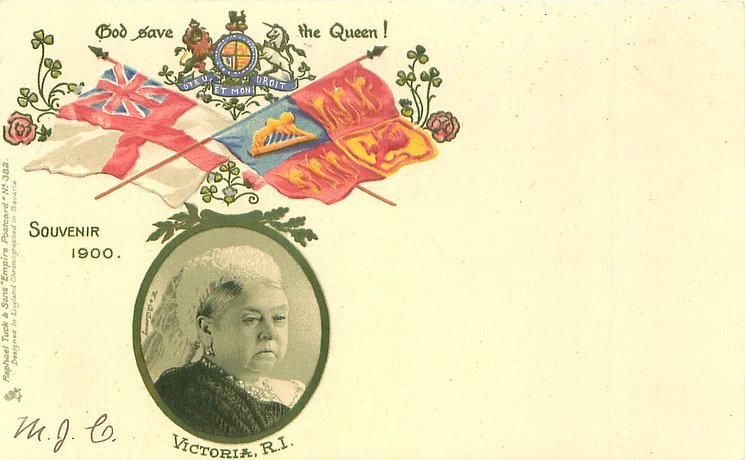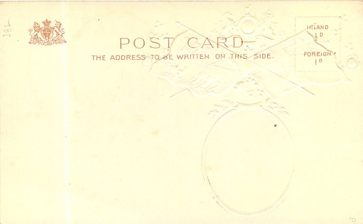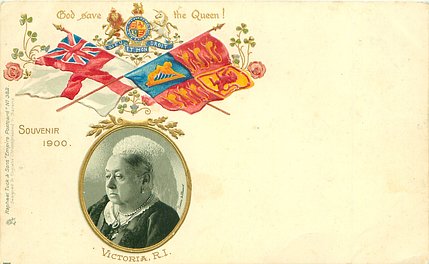u/b, EMPIRE, DESIGNED IN ENGLAND, CHROMOGRAPHED IN BAVARIA, come with or w/o SOUVENIR 1900, come with gilt or silver surrounds & message, listed in 1904 POSTCARD Catalogue