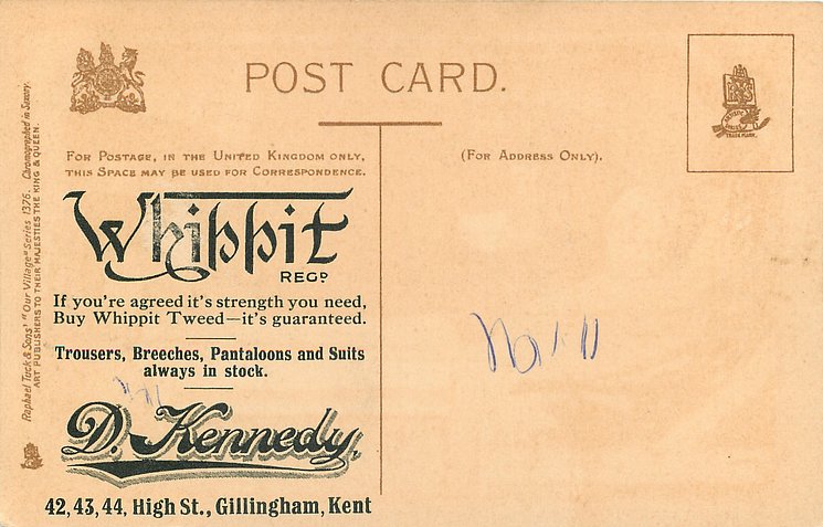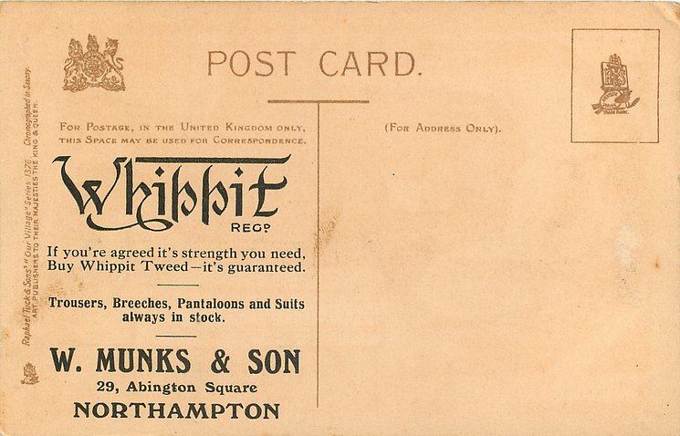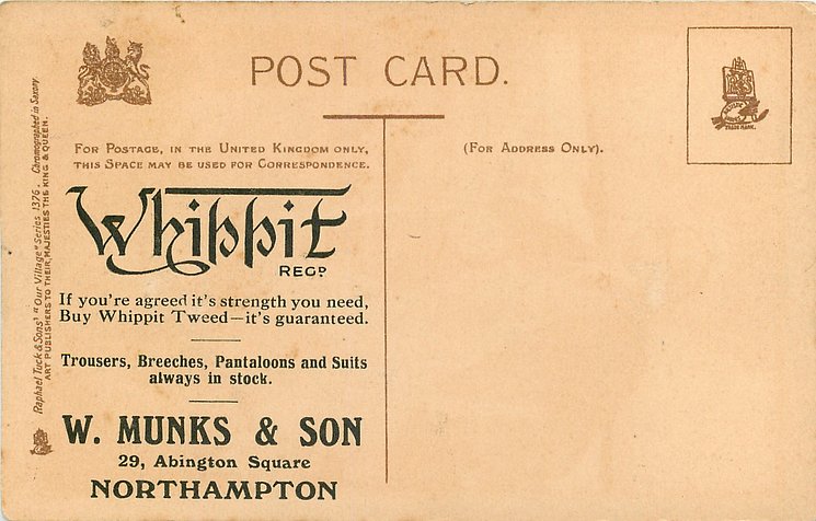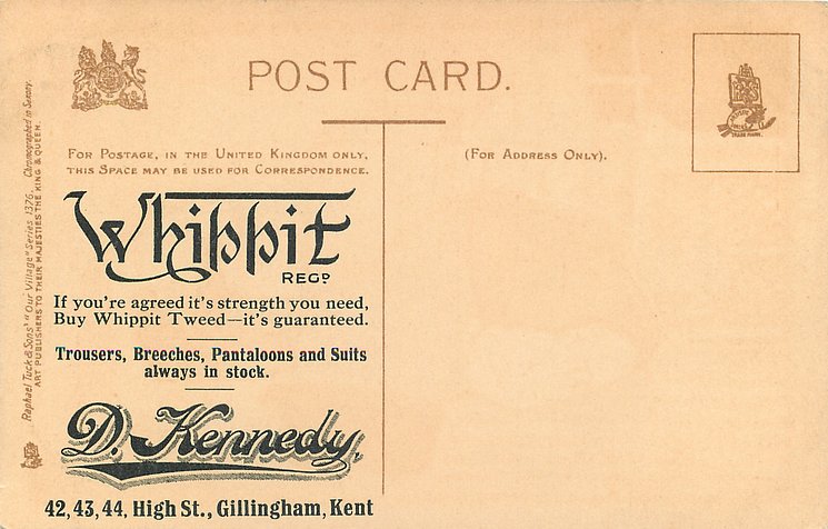 CHROMOGRAPHED IN SAXONY, come with various WHIPPIT TWEED ads on back, listed in 1904 & 1908/1909 & 1911/1912 Postcard Catalogues