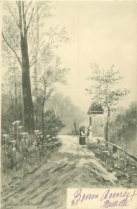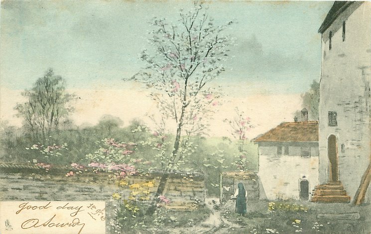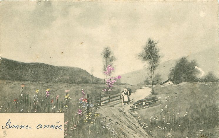 u/b, grey, come hand-coloured, UN MOT A LA POSTE (DEPOSE), same images, English back 1189, rural studies, blossom time, come with or w/o suffix C