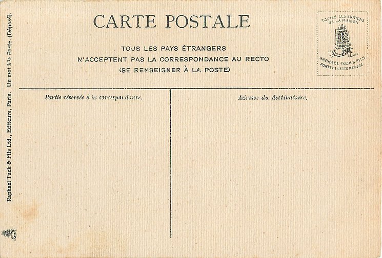 back top CARTE POSTALE, TOUS LES PAYS ETRANGERS N'ACCEPTENT PAE LA CORRESONDENCE AU RECTO (SE RENSEIGNER A LA POSTE, UN MOT A LA POSTE (DEPOSE), in painting books, intended to be to be coloured, perforated-often trimmed