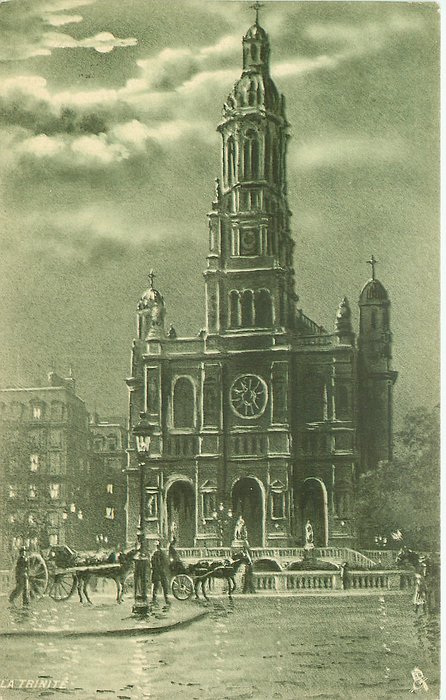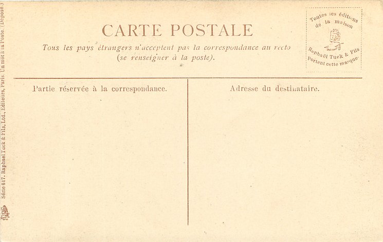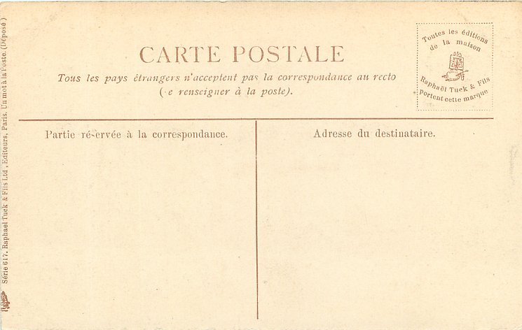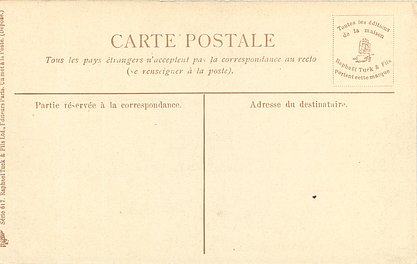 u/b, grey/black, UN MOT A LA POSTE, (DEPOSE), 2 backs, come with advert. on back ROYAL MOKA CHICOREE EXTRE PAQUETAGE ROUGE ARGENT B. BOURGEOIS & LABBE, FABRICANTS CAMBRAI ET PROVILLE (NORD), come i.n., many of the same images come as fold out views in 602 COLLECTION LEPORELLO.