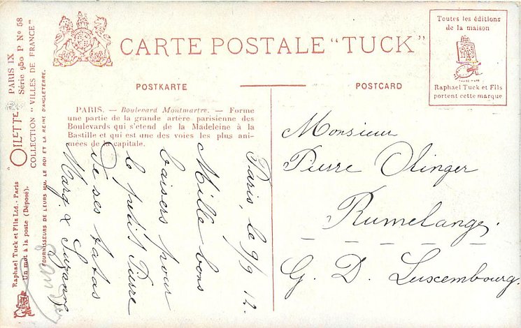 OILETTE (on front), same images OILETTE 933 P PARIS IX (i.n..55-60)