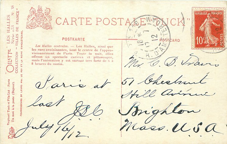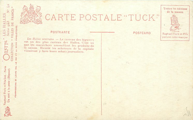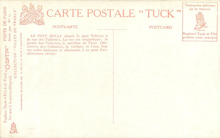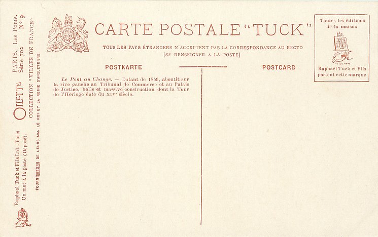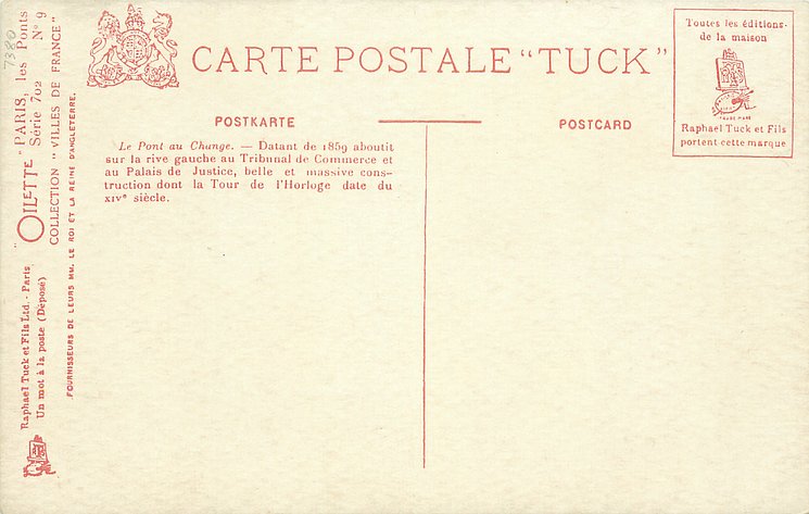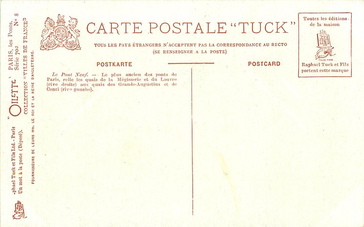 OILETTE, UN MOT A LA POSTE (DEPOSE), COLLECTION VILLES DE FRANCE, 3 backs, most of same images come in SERIE 702 without inset numbers, same images English backs OILETTE WIDE-WIDE-WORLD 7379 & 7380 PARIS BRIDGES I & II