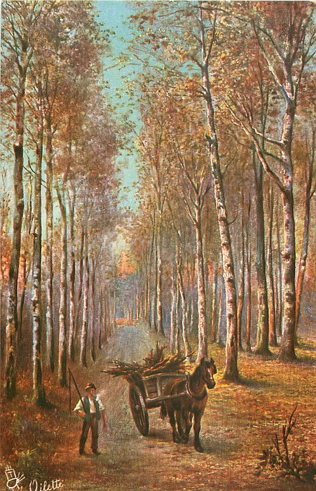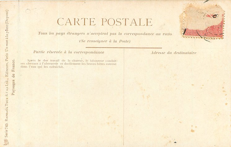 back description:- APRES LE DUR TRAVAIL DE LA CHARRUE, LE LABOUREUR CONDUIT CHEVAUX/LES REFRAICHIT