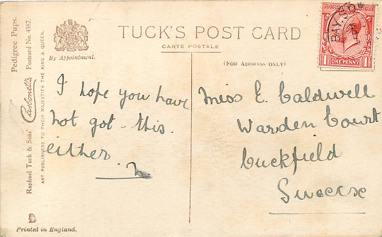 OILETTE. PRINTED IN ENGLAND with or w/o COPYRIGHT LONDON, listed in 1914 Postcard Catalogues