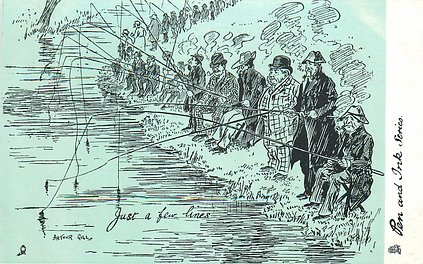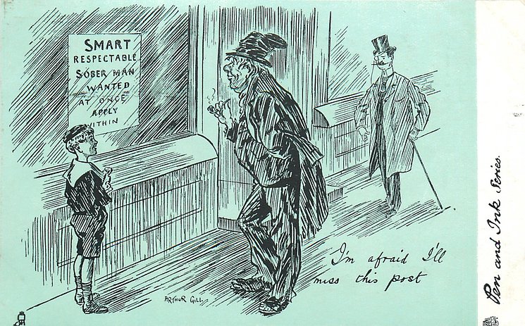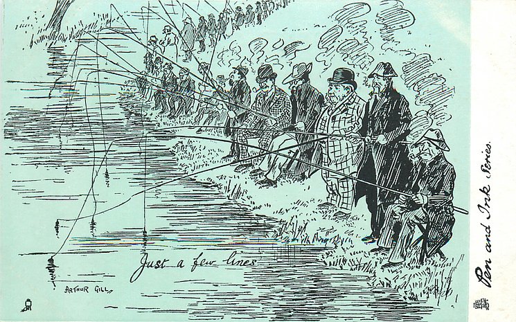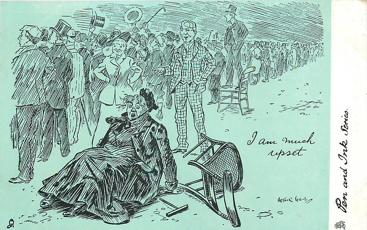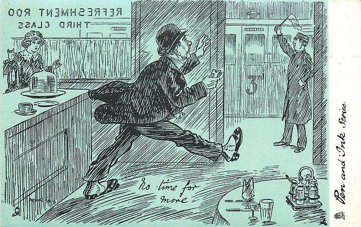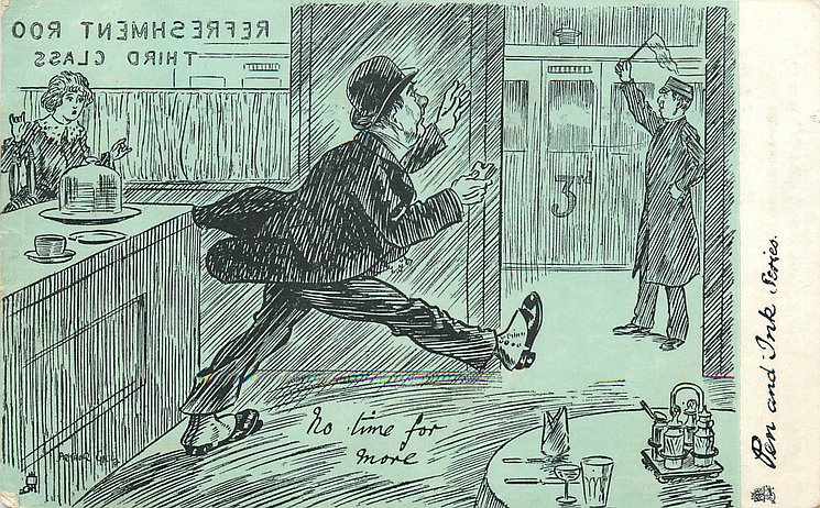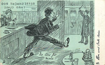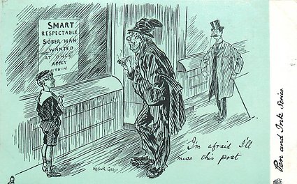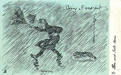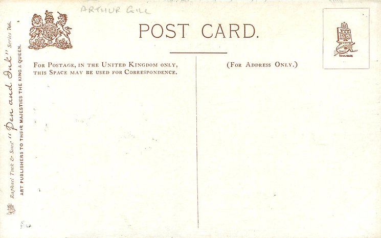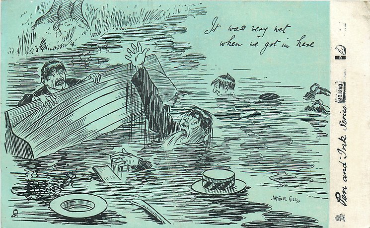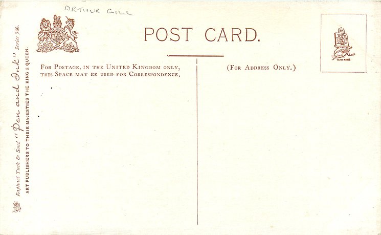 humorous, shades of blue/green background, listed in 1904 & 1908/1909 & 1911/1912 Postcard Catalogues