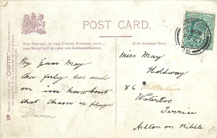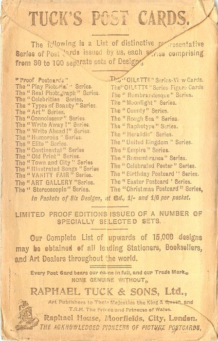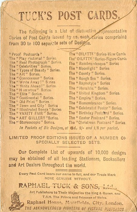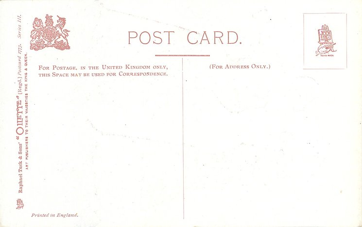 OILETTE, PRINTED IN ENGLAND, listed in 1908/1909 & 1911/1912 Postcard Catalogue