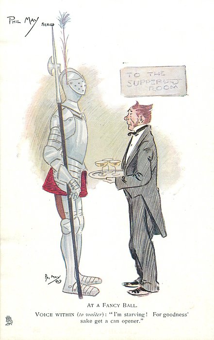 VOICE WITHIN (TO WAITER): "I'M STARVING! FOR GOODNESS' SAKE GET A CAN OPENER."