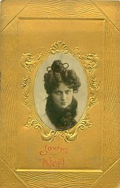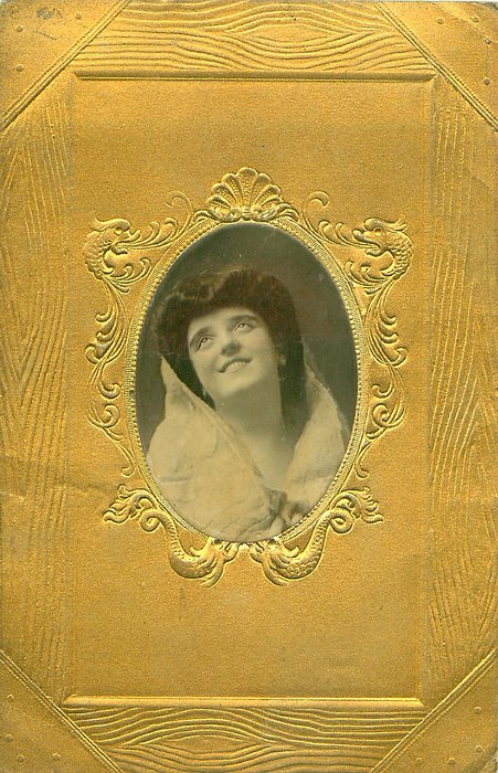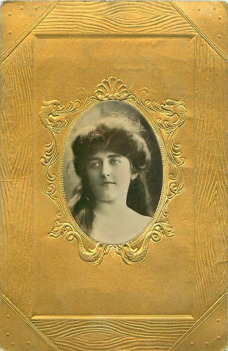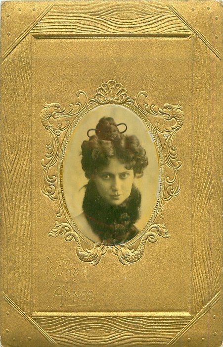 UN MOT A LA POSTE, (DEPOSE), deeply embossed nouveau ornaments in frame surrounding insets to gilt or silver cards, with or w/o backing board, International backs,