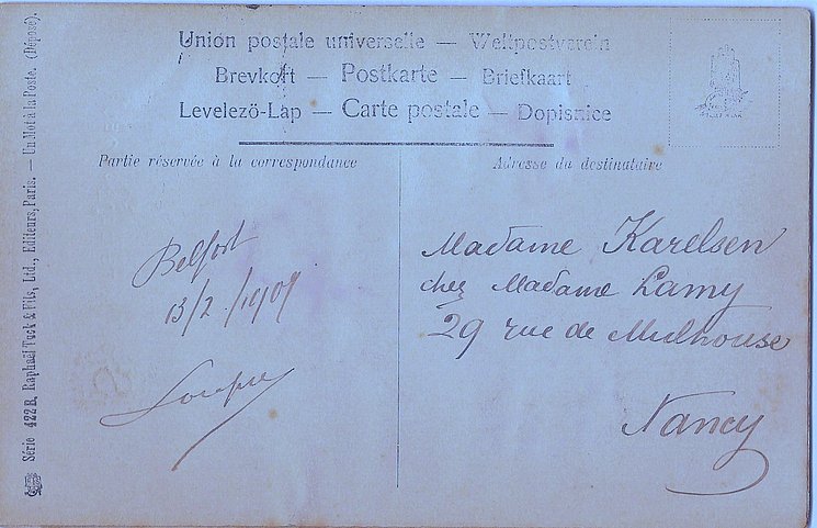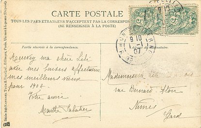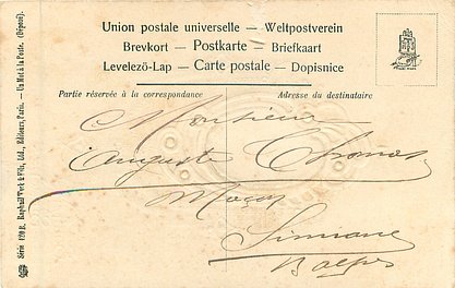 UN MOT A LA POSTE, (DEPOSE), deeply embossed nouveau ornaments in frame surrounding insets in green or purple/brown cards, with or w/o backing board, International backs,