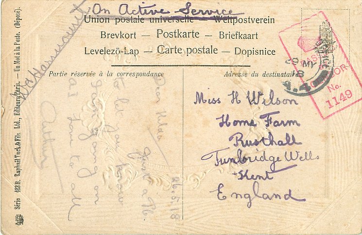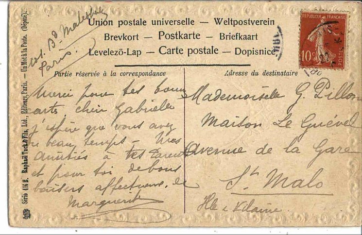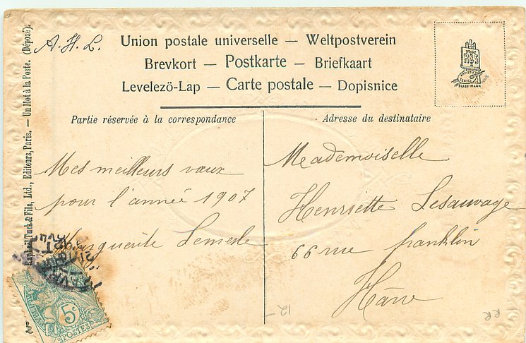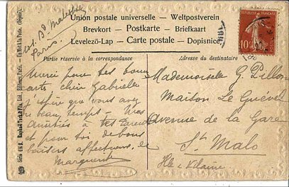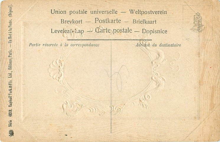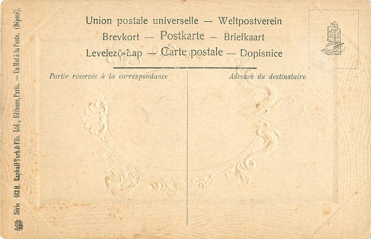 UN MOT A LA POSTE, (DEPOSE), deeply embossed, floral surround backing board, universal back