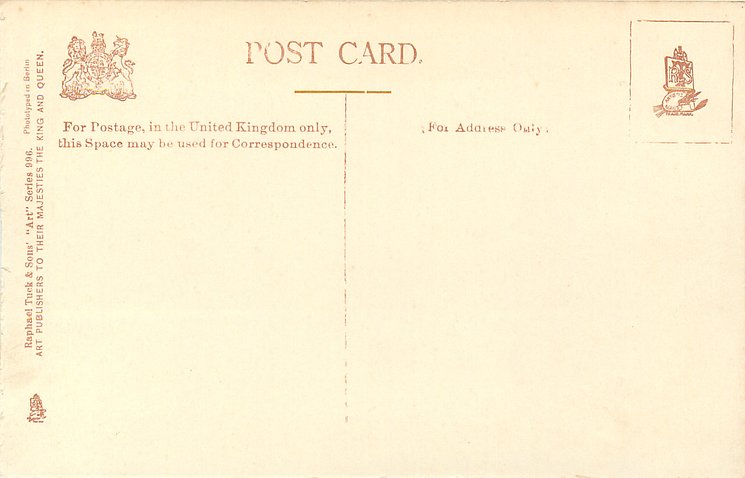 ART, come u/b or d/b, come sepia, blue/black, grey, 4 backs, PHOTOTYPED IN BERLIN, same images in 5075, listed in 1904 POSTCARD Catalogue
