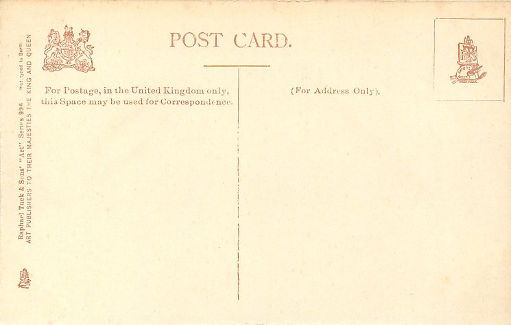 OILETTE, PRINTED IN ENGLAND, AFTER THE ORIGINAL PAINTING BY E. LONGSTAFFE., listed in 1911/1912 & 1930 POSTCARD Catalogues