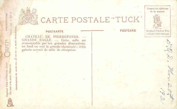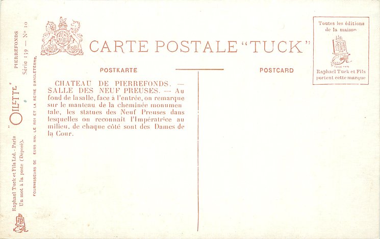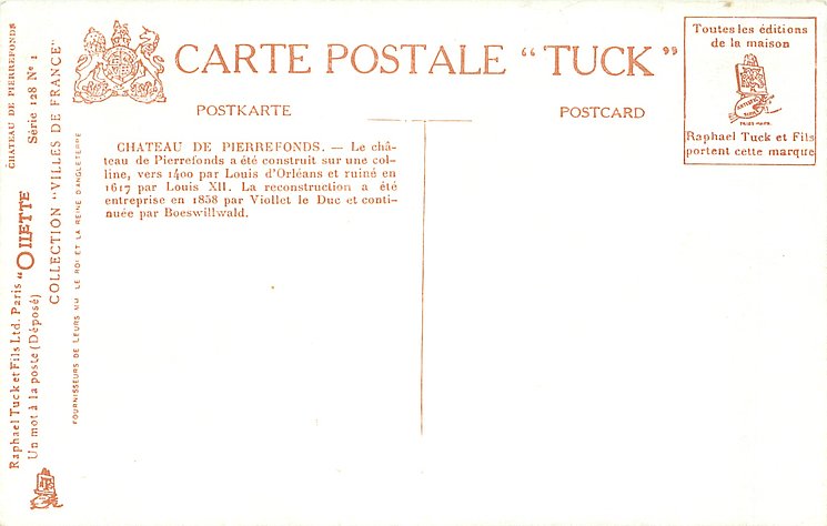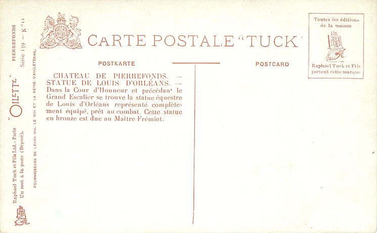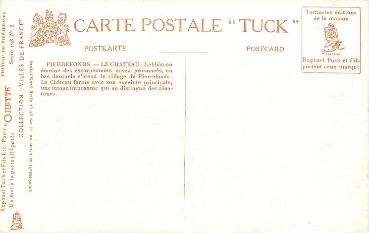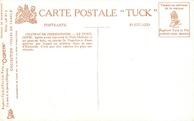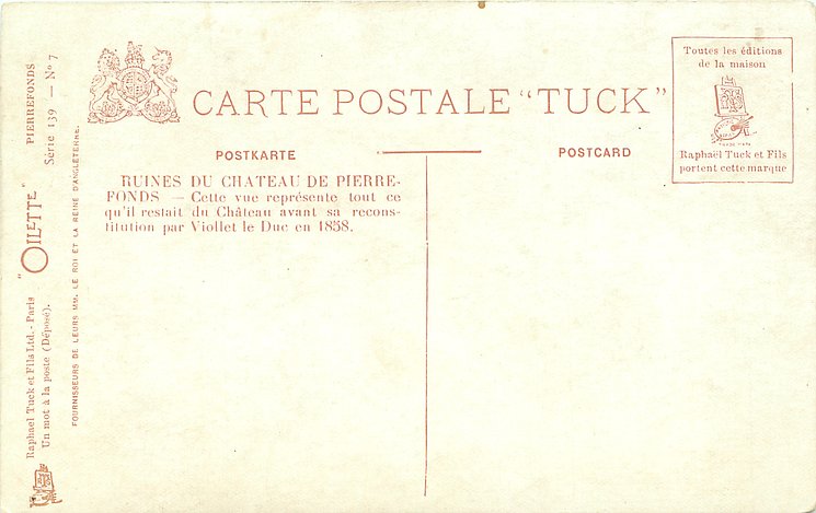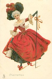 UN MOT A LA POSTE (DEPOSE), comes with & w/o IMPRIME EN ANGLETERRE, comes with ad ROYAL MOKA CHICOREE EXTRA B.BOURGEOIS & LABBE, FABRIC A CAMBRAI ET PROVILLE (NORD) or OPT. in violet on front OFFERT PAR "LA PENSEE" VALENCIENNES, same images English back 767 PIERRETTE AND PIERROT