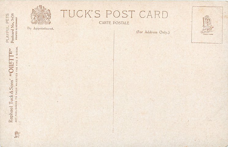OILETTE, PRINTED IN ENGLAND, COPYRIGHT LONDON, comes oilfacsim but not so trade named, 4 backs, listed in 1930 POSTCARD Catalogue 1932 ART SERVICE Catalogue