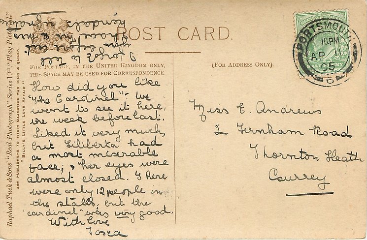 Eva Moore (1868 Brighton-1955 Eng ) sister of Decima Moore. was Billy in Billy's Little Love Affair" Florence St. John as Mrs. Greaves in "Billiy's Little Love Affair" Criterion Th. London 1903 (153)
