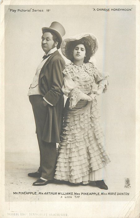 Arthur Williams as Mr. Pineapple & Marie Dainton as Mrs Pineapple in The Chinese Honeymoon at Royal Strand Th. London 1904 (1075)