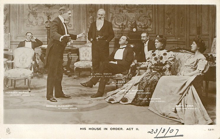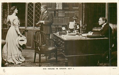 BERYL FABER AS GERALDINE RIDGELEY; GEORGE ALEXANDER AS HILARY JESSON; HERBERT WARING AS FILMER JESSON, M. " His House in Order" St.James Th. London 1908 (430)