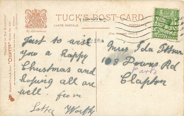 CHRISTMAS, PRINTED IN U.S.A., COPYRIGHT RAPHAEL TUCK & SONS CO., LTD. N.Y.