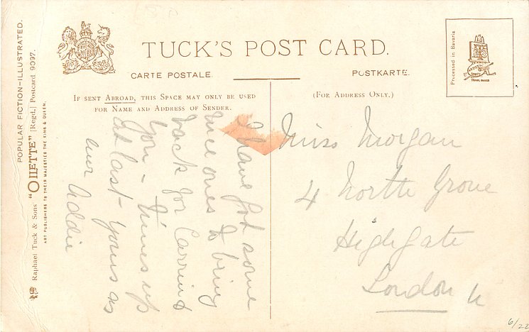 OILETTE, PROCESSED IN BAVARIA (in stamp box), listed in 1908/1909 & 1911/1912 Postcard Catalogue