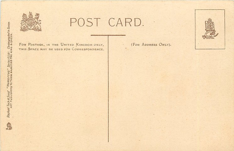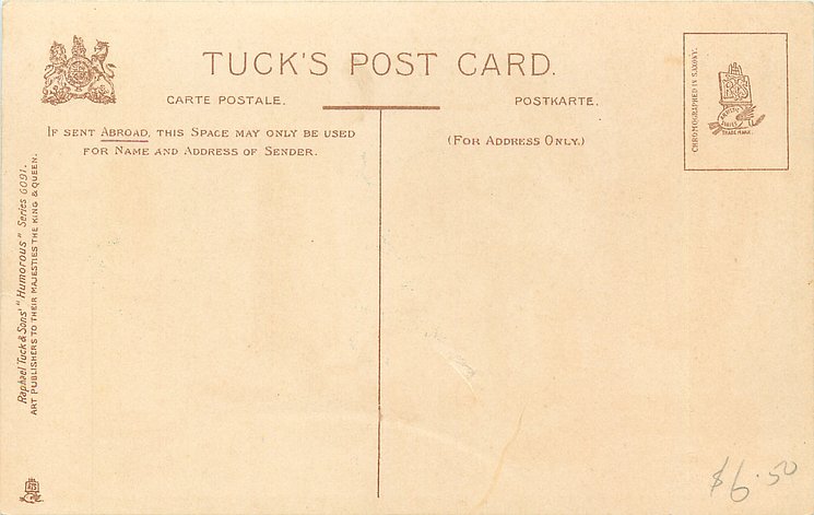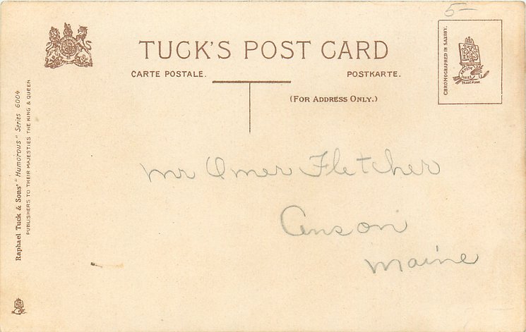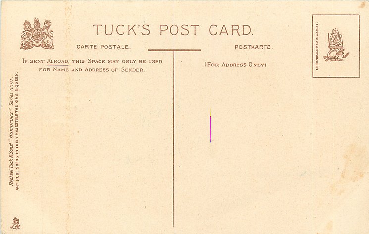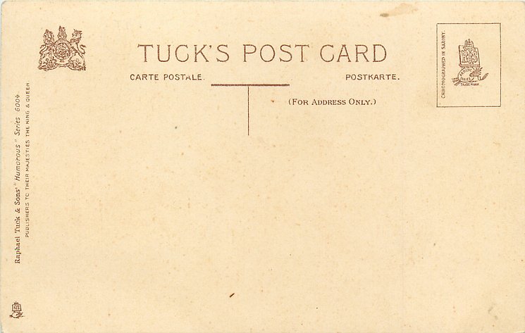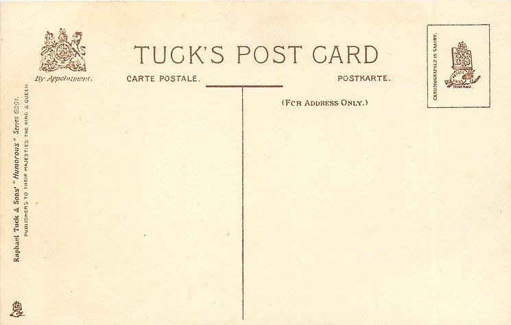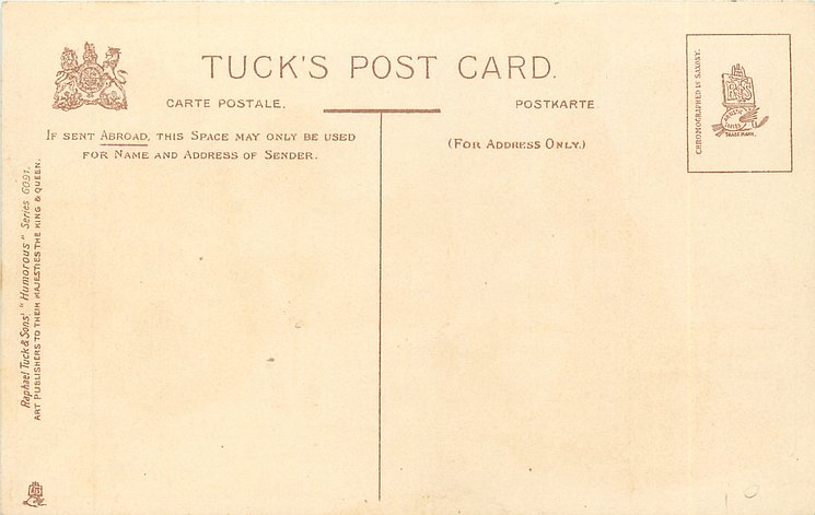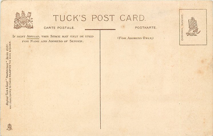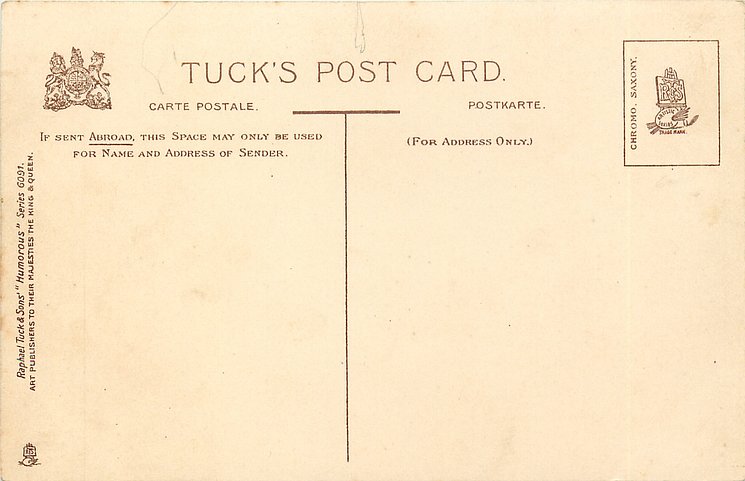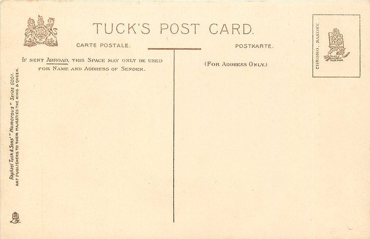 HUMOROUS, CHROMOGRAPHED IN SAXONY (in stamp box or not), series title does not appear on cards, listed in 1904 POSTCARD Catalogue