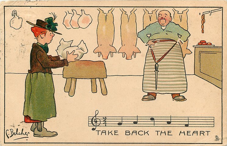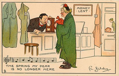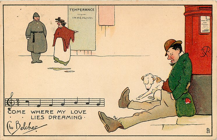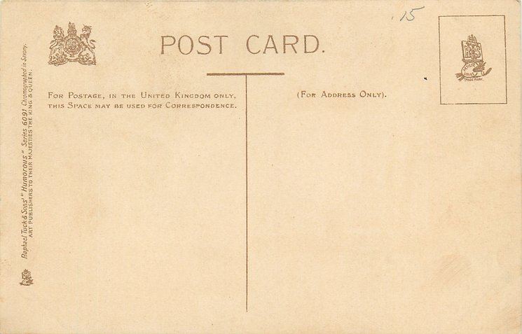 HUMOROUS, CHROMOGRAPHED IN SAXONY or CHROMO. SAXONY (in stamp box or not), set title does not appear on cards, 3 backs, listed as SONGS ILLUSTRATED in 1908/1909 & 1911/1912 Postcard Catalogue